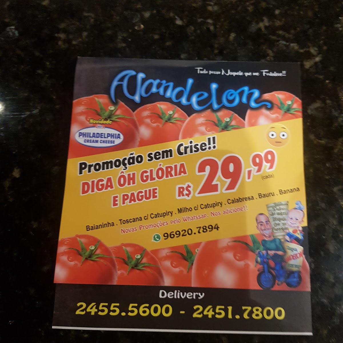 The menu at Pizzaria Alandelon II offers a variety of delicious options for every taste. Their daily promotions include the Diga Oh Glória and Monte Seu Combo, perfect for those looking to customize their meal. For pizza lovers, there are both Grande and Broto sizes available, with a selection of savory and sweet options. The savory pizzas are paired with fresh toppings, while the Pizzas Doces in Grande and Broto sizes provide a sweet indulgence for dessert lovers. The Fogazzas are a standout feature, with choices like Fogazza De Frango Catupiry, Fogazza De Toscana Catupiry, Fogazza De Milho Com Catupiry, Fogazza De Calabresa, and Fogazza De Palmito Com Catupiry, offering a range of flavors. To accompany your meal, there is a selection of Refrigerante 2L, Refrigerante Lata, H2O 500 Ml, and Cerveja Original Lata, ensuring a refreshing drink for everyone. Whether you're craving a pizza or a savory Fogazza, Pizzaria Alandelon II has something for all tastes, making it a great choice for a satisfying meal.
